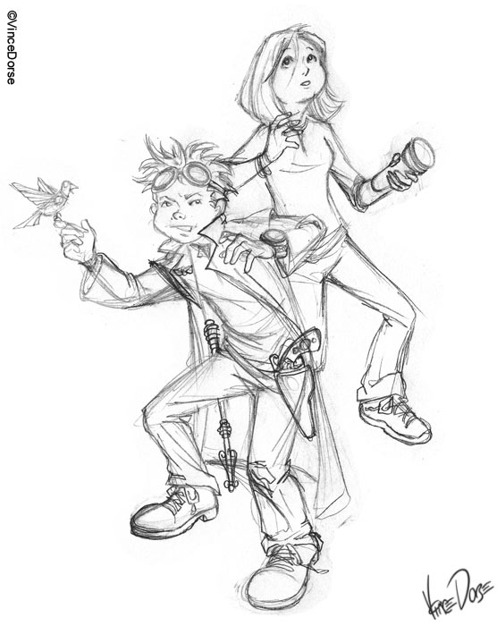 The first steps I've posted here are the sketch phases of the main characters, Tommy and Jezebel. They're adventurers…but more on them later. First, lemme run down the three basic stages in the sketch phase of this illustration: 1)The loose rough, to establish composition 2) the polished rough, where I fleshed out the shapes a little better and 3) the refined, final pencils where I cleaned everything up. After this I'll post some color stages and maybe some other characters. I still have only a vague idea of how this will turn out.